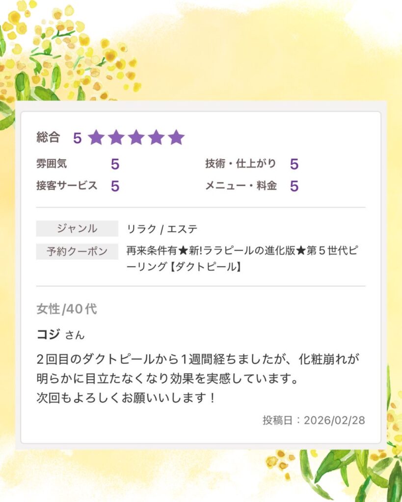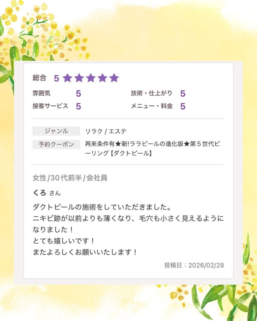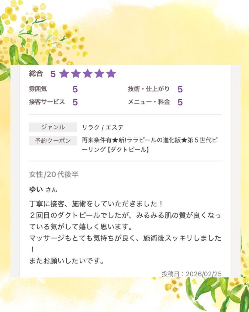 よりご満足いただける施術をご提供できるよう努めてまいります✨